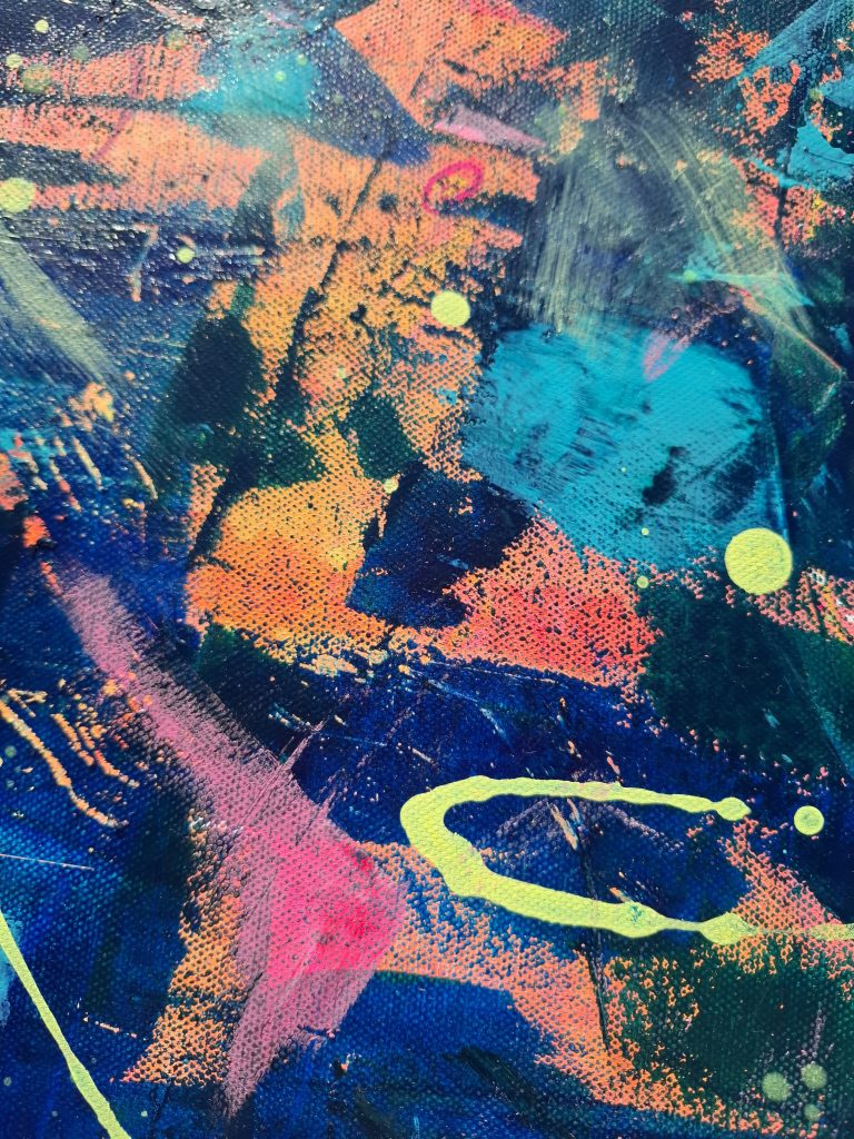 Dieses Bild war eines meiner ersten Werke an dem ich mich mit abstrakter Malerei versucht habe. Die Leinwand hat mir so viel Platz gegeben, um mich auszuprobieren und mir gezeigt was entstehen kann, wenn man sich auf etwas neues einlässt und etwas wagt.