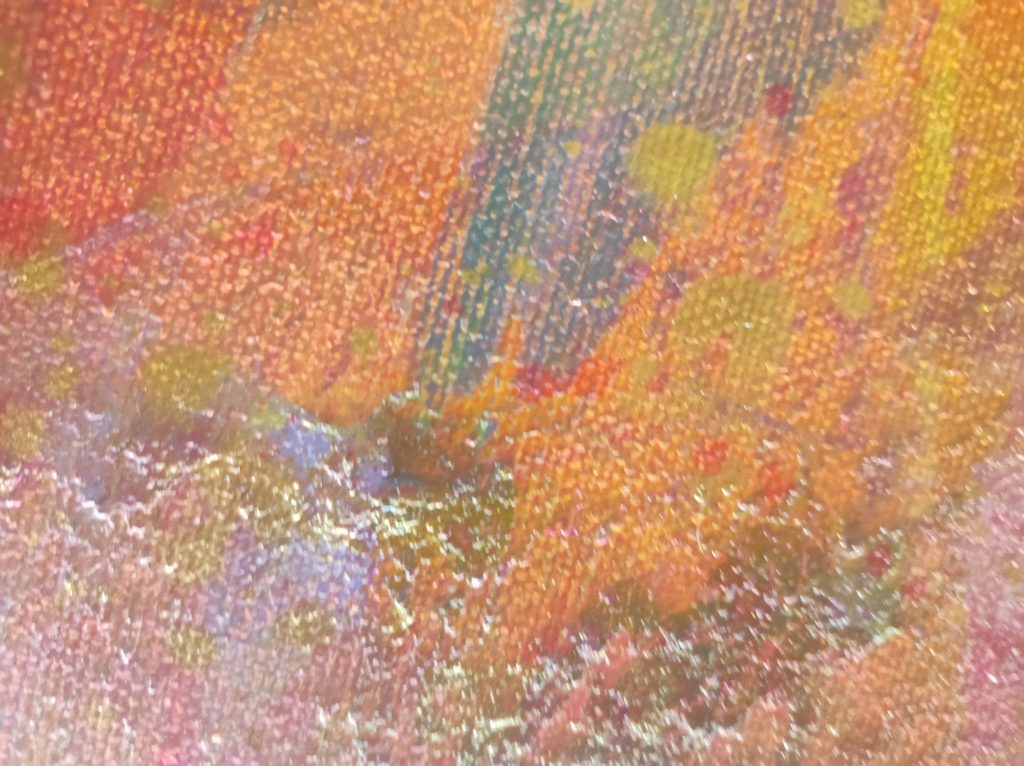 Eine Farbkombination aus den Farben des Regenbogens. Dieses Bild strahlt Wärme aus und leuchtet in seinen wunderschönen Farben. So wie der Regenbogen plötzlich erscheint, sind es manchmal die kleinen Dinge im Leben, Momente, ein freundliches Wort eine liebevolle Geste die uns entgegengebracht werden und uns ein Lächeln ins Gesicht zaubern.